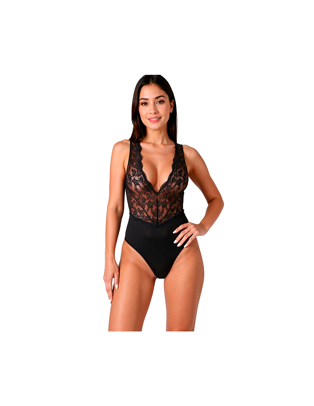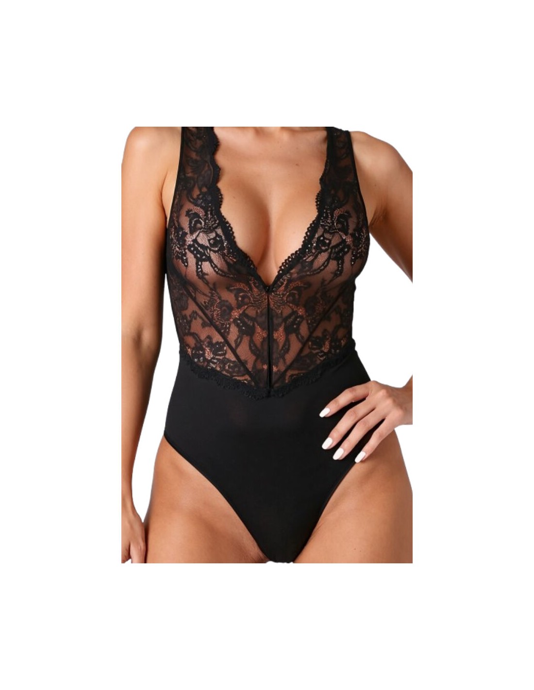 • Estilo: Body con escote en V pronunciado en la parte delantera y espalda abierta con detalles de encaje