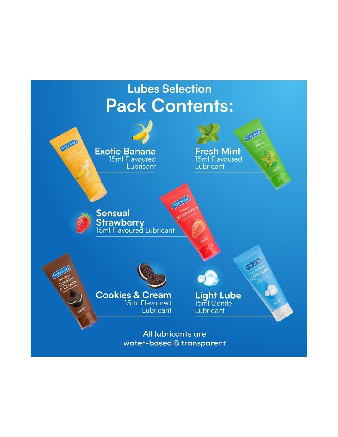Explora nuevas sensaciones, disfruta de deliciosos sabores y crea momentos inolvidables con tu pareja. Confíe en Pasante para proporcionarle lubricantes de la más alta calidad que sean seguros, confiables y agradables. Dentro del divertido pack encontrarás una variedad de tubos de lubricante personal de 15ml que incluyen: