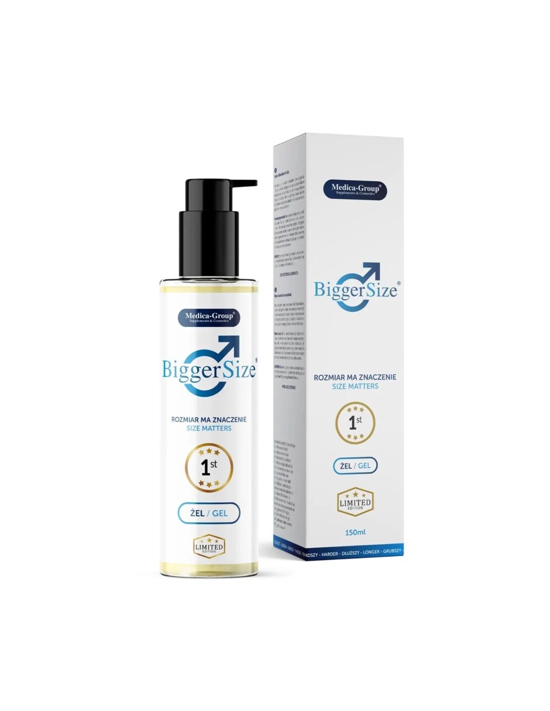 BiggerSize Gel is an innovative 2-in-1 solution that helps men who want to strengthen and thicken their penis, thereby increasing the intensity of sensations and self-confidence. Natural ingredients such as guarana, hops, nettle, and ginseng extract have been carefully selected to stimulate blood flow, improve circulation, and increase sensitivity. By acting directly on the skin of the penis, BiggerSize Gel improves the quality of the erection and prolongs the duration of sexual intercourse. The product provides silky hydration, eliminating the feeling of dryness and increasing comfort. Its versatility allows it to be used with condoms and erotic accessories, making it an ideal product for both everyday use and special moments with your partner.