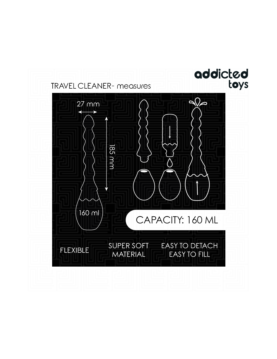 The Addicted Toys Model 2 Travel Cleaner is an ideal choice for those who want to keep their sex toys in perfect hygiene condition while away from home or traveling. With a practical and functional design, it offers a simple and effective way to clean your toys quickly and safely.