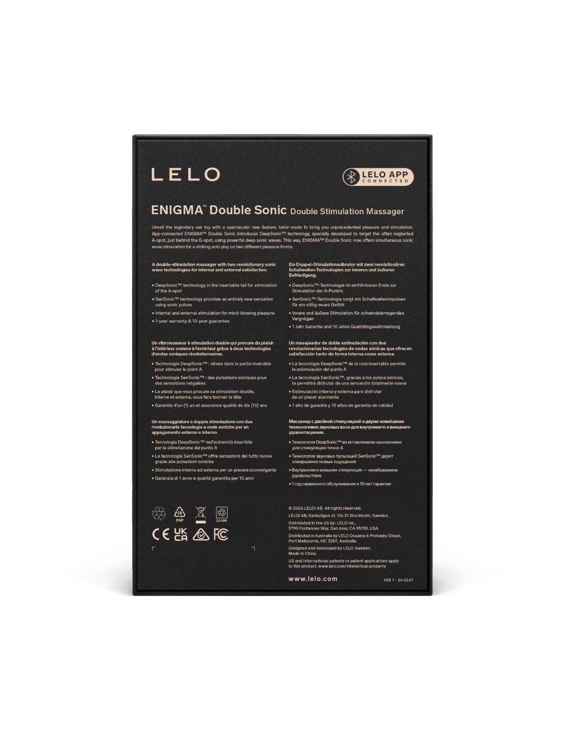 Le vibromasseur point A ENIGMA⢠Double Sonic est le dernier-né de la gamme LELO ENIGMAâ¢. Il intègre la technologie DeepSonicâ¢, qui cible le point A, souvent négligé. Il propose également huit modes de plaisir et deux autres modes de contrôle exclusifs, accessibles via l'application LELO. Grâce à son embout sonique spécial, situé dans la queue insérable, ENIGMA⢠Double Sonic stimule une zone érogène plus large pour atteindre le point A grâce à ses ondes sonores profondes et vous procurer des orgasmes vaginaux plus intenses. Il envoie également des ondes sonores au clitoris et des vibrations au point G.